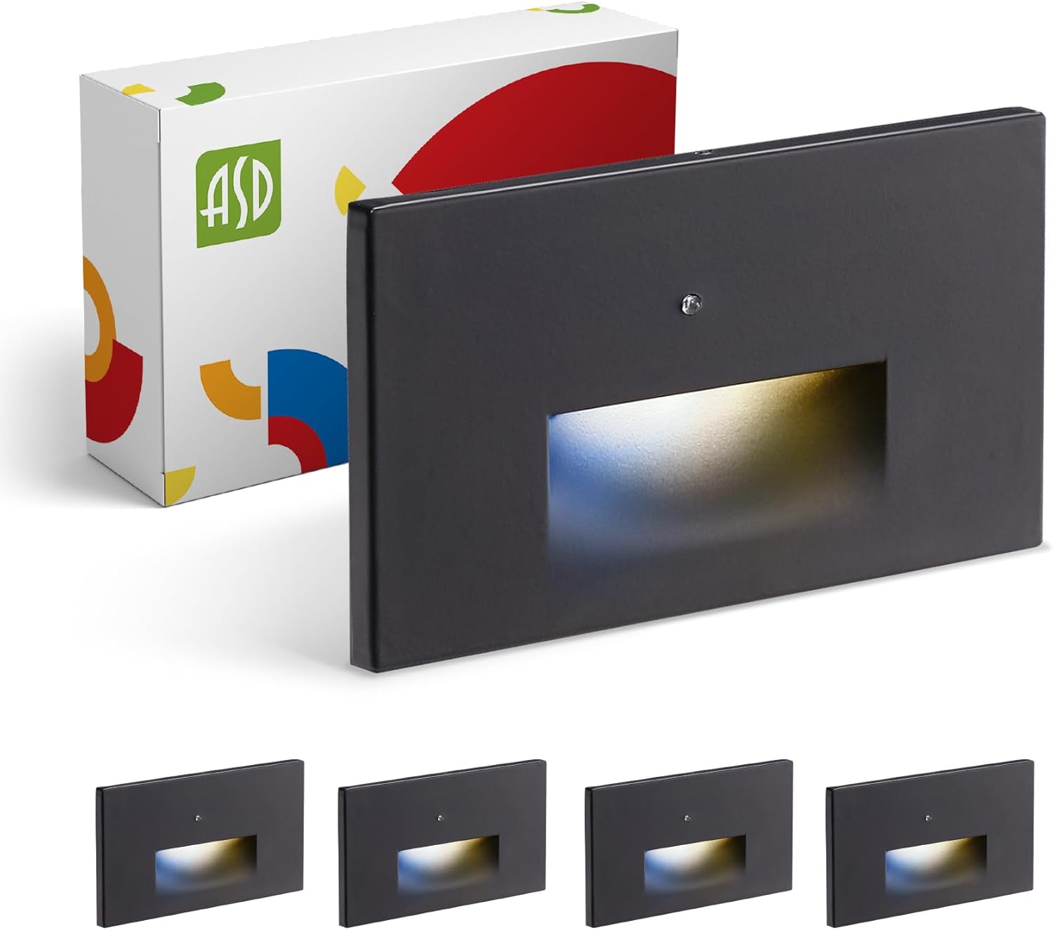 ASD LED Recessed Step Light Fixture | 3W 120LM 3000K-5000K 120V | 3CCT, Photocell, Waterproof, ETL Listed | Dusk to Dawn Stair Lamp, Outdoor Tread Lighting, Staircase Spotlight | B...