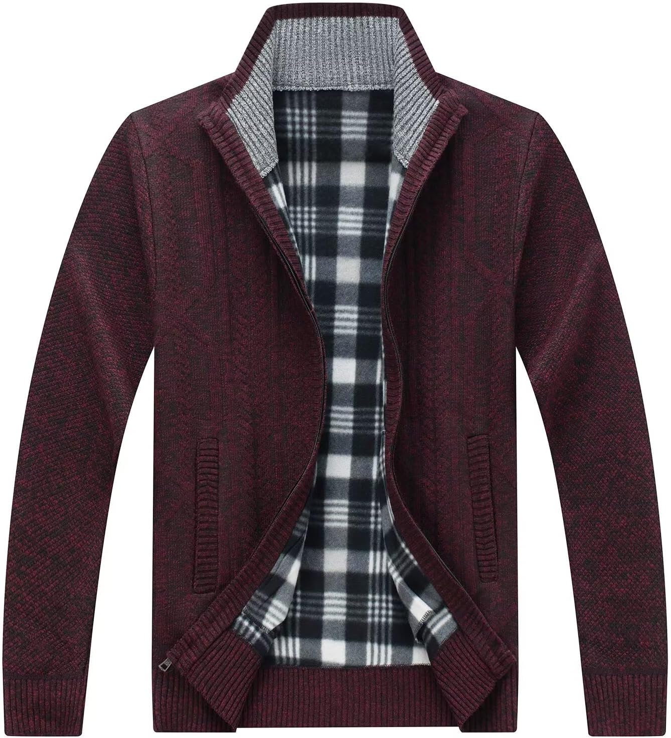 Men's Knit Cardigan Sweater Slim Fit Long Sleeve Stand Collar Full Zipper Casual Sweater