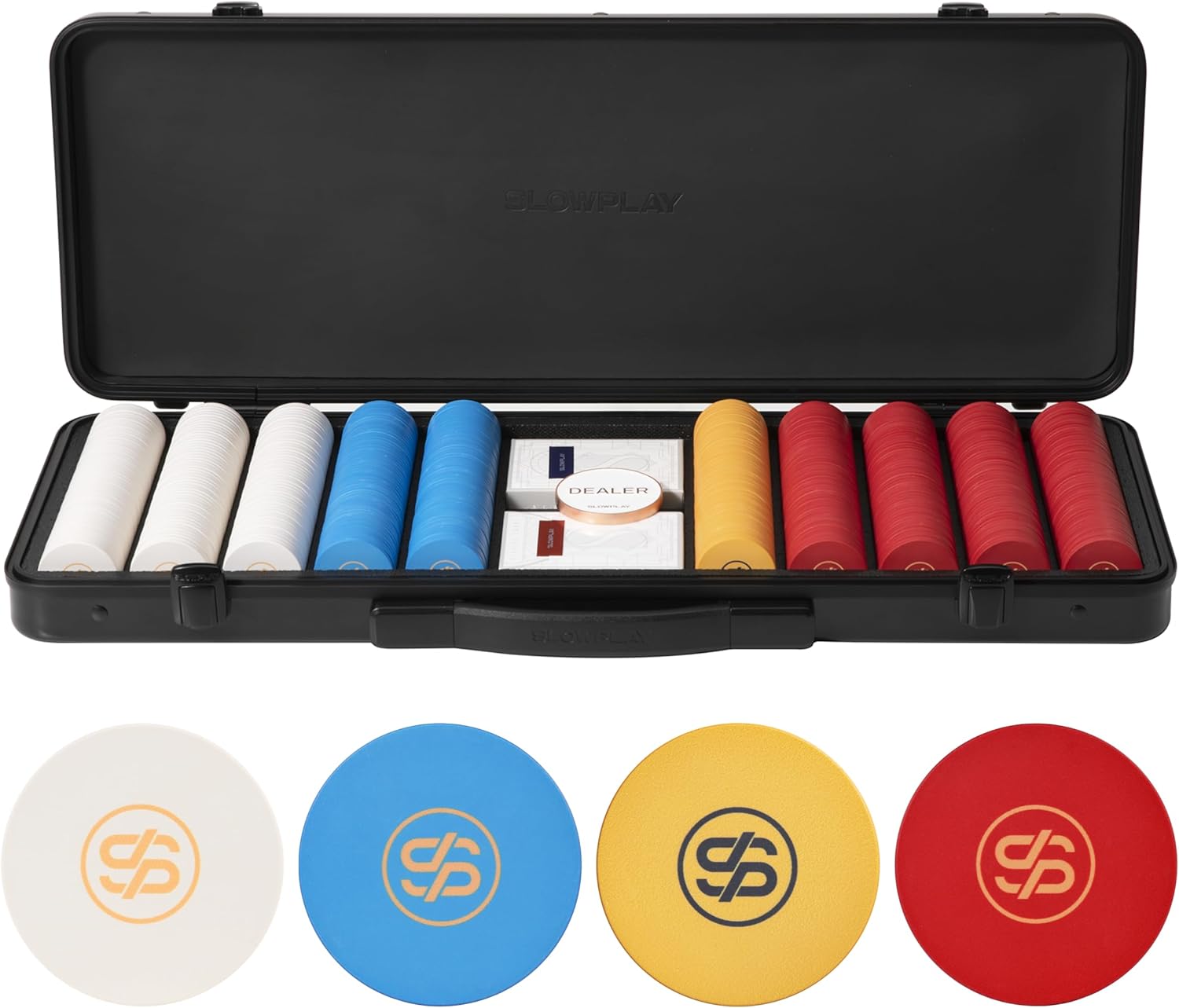 SLOWPLAY Godel Ceramic Poker Chips Set for Texas Hold'em, 500 PCS [Blank Chips], 39mm & 10g Each | Features a High-end Chip case with Extra Durable German Polycarbonate Shell