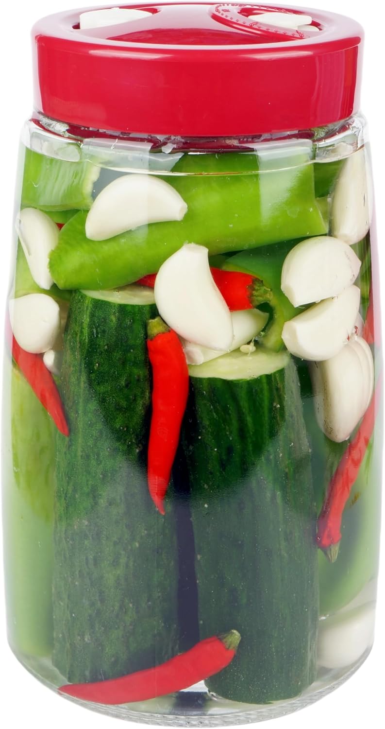 Fermentation Jar with Dual Venting Valve Airlock Lid, 1.8L Wide Mouth Glass Fermenting Jar, Pickle Jar, Sourdough Starter Jar, Kimchi Container, Making Kit for Sauerkraut, Mead, Wi...